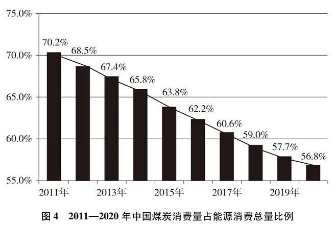 能源消費結(jié)構(gòu)向清潔低碳加速轉(zhuǎn)化。為應(yīng)對化石能源燃燒所帶來的環(huán)境污染和氣候變化問題,中國嚴控煤炭消費,煤炭消費占比持續(xù)明顯下降。2020年中國能源消費總量控制在50億噸標準煤以內(nèi),煤炭占能源消費總量比重由2005年的72.4%下降至2020年的56.8%。中國超額完成“十三五”煤炭去產(chǎn)能、淘汰煤電落后產(chǎn)能目標任務(wù),累計淘汰煤電落后產(chǎn)能4500萬千瓦以上。截至2020年底,中國北方地區(qū)冬季清潔取暖率已提升到60%以上,京津冀及周邊地區(qū)、汾渭平原累計完成散煤替代2500萬戶左右,削減散煤約5000萬噸,據(jù)測算,相當于少排放二氧化碳約9200萬噸。