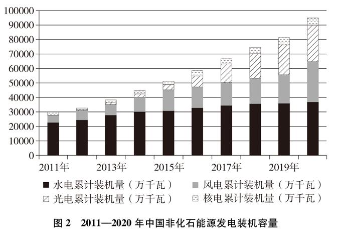 非化石能源快速發(fā)展。中國把非化石能源放在能源發(fā)展優(yōu)先位置,大力開發(fā)利用非化石能源,推進能源綠色低碳轉(zhuǎn)型。初步核算,2020年,中國非化石能源占能源消費總量比重提高到15.9%,比2005年大幅提升了8.5個百分點;中國非化石能源發(fā)電裝機總規(guī)模達到9.8億千瓦,占總裝機的比重達到44.7%,其中,風(fēng)電、光伏、水電、生物質(zhì)發(fā)電、核電裝機容量分別達到2.8億千瓦、2.5億千瓦、3.7億千瓦、2952萬千瓦、4989萬千瓦,光伏和風(fēng)電裝機容量較2005年分別增加了3000多倍和200多倍。非化石能源發(fā)電量達到2.6萬億千瓦時,占全社會用電量的比重達到三分之一以上。